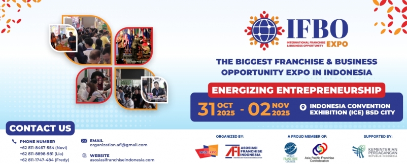 Indonesia Franchise Week 2025 hari ini resmi dibuka. Event akbar industri Franchise ini akan berlangsung pada 30 Oktober-2 November 2025 di Indonesia Convention Exhibition (ICE) BSD, Tangerang. Acara ini mengusung tema yang mencerminkan semangat dengan memperkuat daya saing dan semangat kewirausahaan di era ekonomi dinamis, “Energizing Entrepreneurship”. Acara berskala internasional […]
